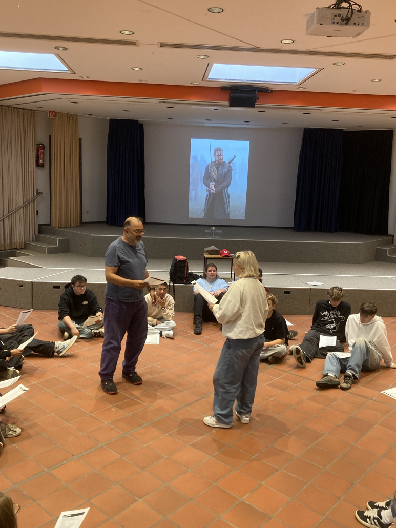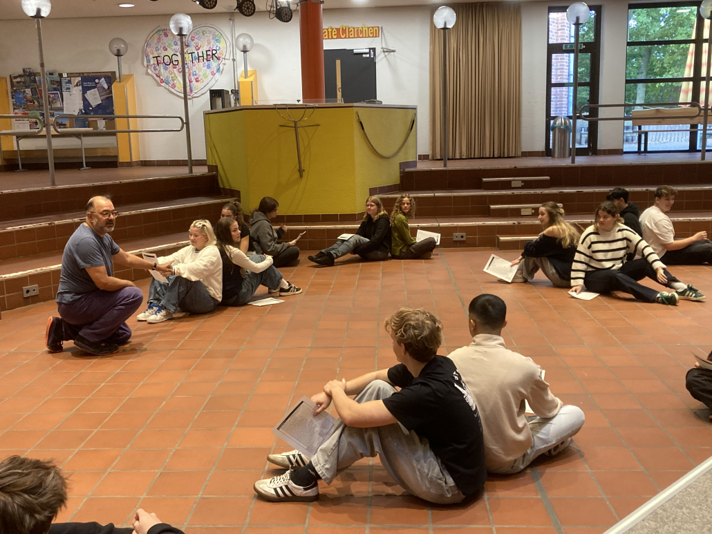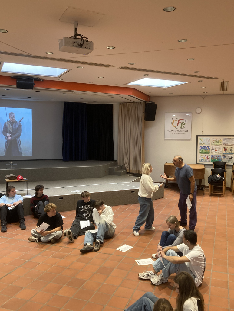 Am Donnerstag, den 11. September 2025, und Freitag, den 12. September 2025, hatten wir, die Q2, die einmalige Chance, mit jedem Englischkurs an einem 90-minütigen Shakespeare-Workshop unter der Leitung des britischen Schauspielers Julius D’Silva teilzunehmen.
