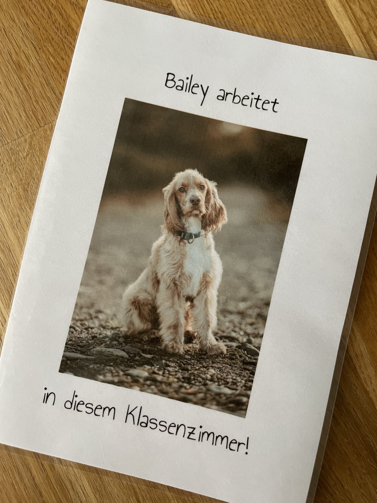 Wir sind stolz darauf, Bailey als Teil unserer Schulgemeinschaft zu haben und sind überzeugt, dass er einen wertvollen Beitrag zu unserem Schulalltag leisten wird. Die Schülerinnen und Schüler freuen sich bereits darauf, ihn nach „seiner Elternzeit“ in den Unterricht zu integrieren und von den vielen Vorteilen, die ein Schulhund mit sich bringt, zu profitieren.