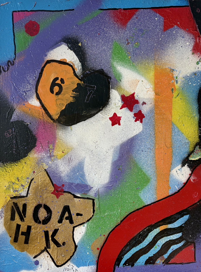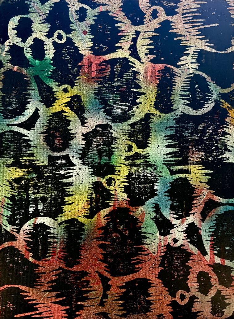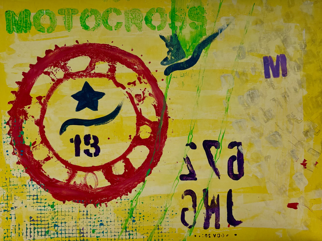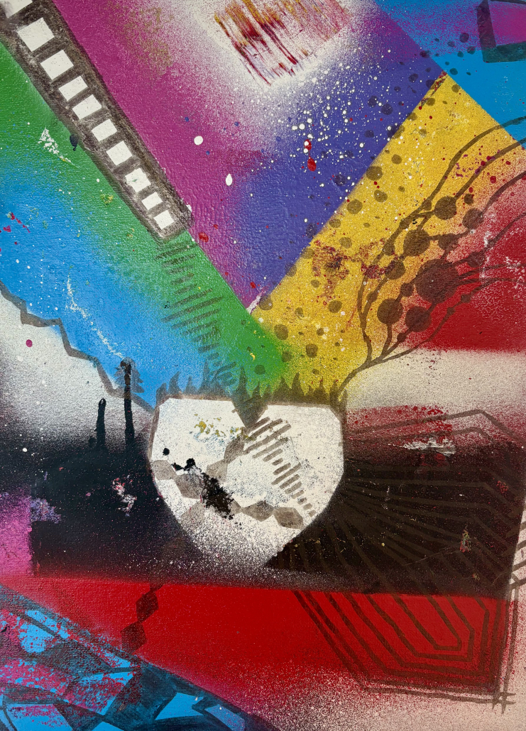 Aufgabe war es, eine Leinwand frei und abstrakt unter Verwendung von Drucktechniken zu gestalten. Dabei sollte die Widerspiegelung der eigenen Persönlichkeit eine Rolle spielen. Vornehmlich wurde mit Acrylfarben gearbeitet, aber es kamen auch Spraydosen zum Einsatz.