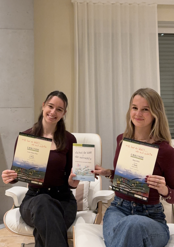Im Rahmen der Buchmesse in Nettersheim wurden die diesjährigen Preise des Jugendliteraturwettbewerbs Lit.Eifel verliehen. In der Altersgruppe 16–19 Jahre, unter dem diesjährigen Thema „Du hast die Wahl! (…oder auch nicht?“), konnten gleich zwei Schülerinnen unserer Schule überzeugen.
