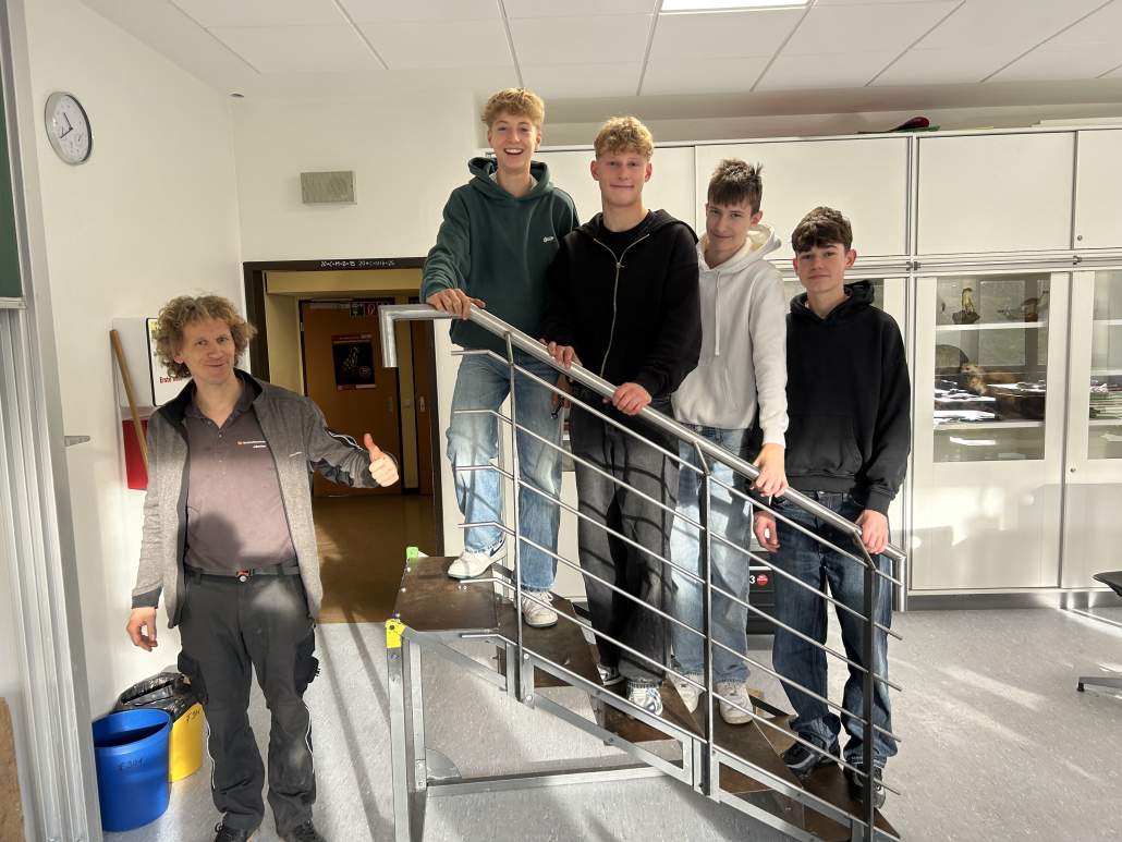 In kleinen Gruppen konnten die Schülerinnen und Schüler unter Anleitung der Profis eigene Werkstücke herstellen. Der Stahlbauer baute gemeinsam mit den Jugendlichen eine Stahltreppe, bei der die Schüler unter anderem das Messen, Anreißen und Verschrauben der einzelnen Elemente erlernten. Der Elektriker zeigte, wie ein funktionierender Schaltkreis aufgebaut wird. Hier durften die Schülerinnen und Schüler Kabel verlegen, Bauteile verbinden und den Stromfluss testen.