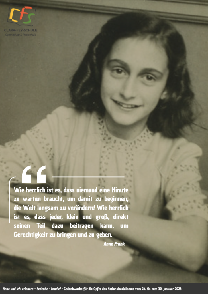 Anne und ich: erinnere – bedenke – handle! – Gedenkwoche für die Opfer des Nationalsozialismus an der Clara-Fey-Schule