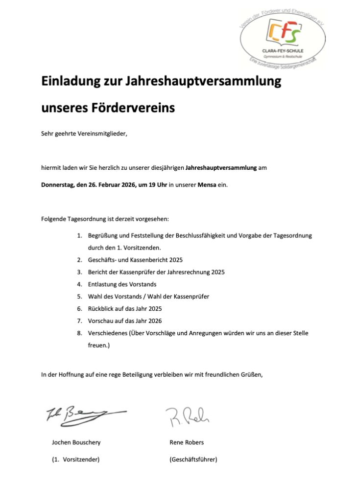 Einladung zur Jahreshauptversammlung 2026 unseres Fördervereins
