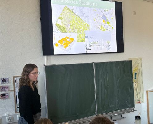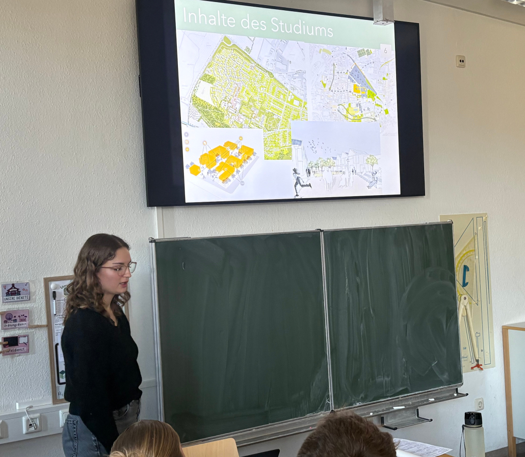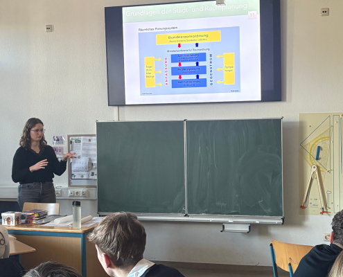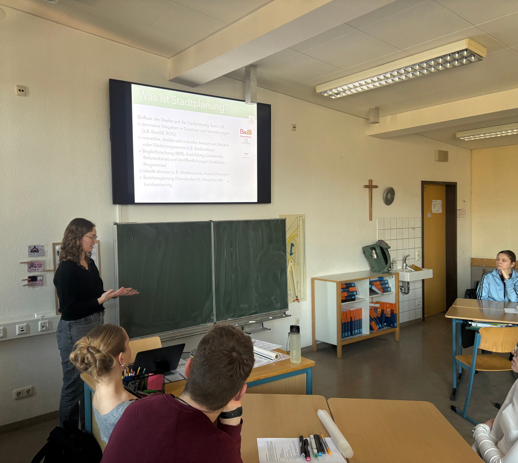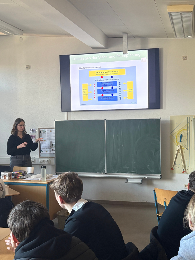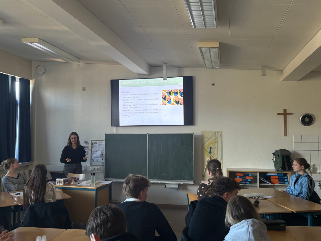 Am 23.01.2026 erhielt der Erdkunde-LK von Herrn Weber-Reddelien gemeinsam mit dem Grundkurs von Herrn Mathia Besuch von Stadtplanerin Pia Richerzhagen aus Euskirchen, die zunächst unter Leitfrage „Was machen eigentlich Stadtplaner*innen?“ ihren Beruf vorstellte, bevor die Erdkunde-Kurse selbst aktiv werden konnten.