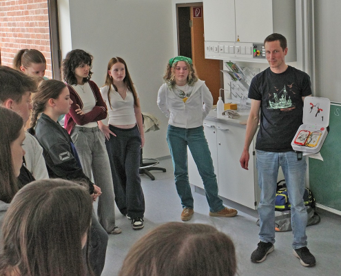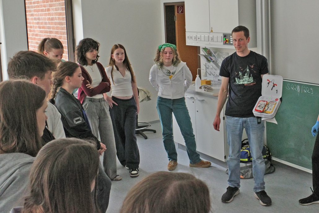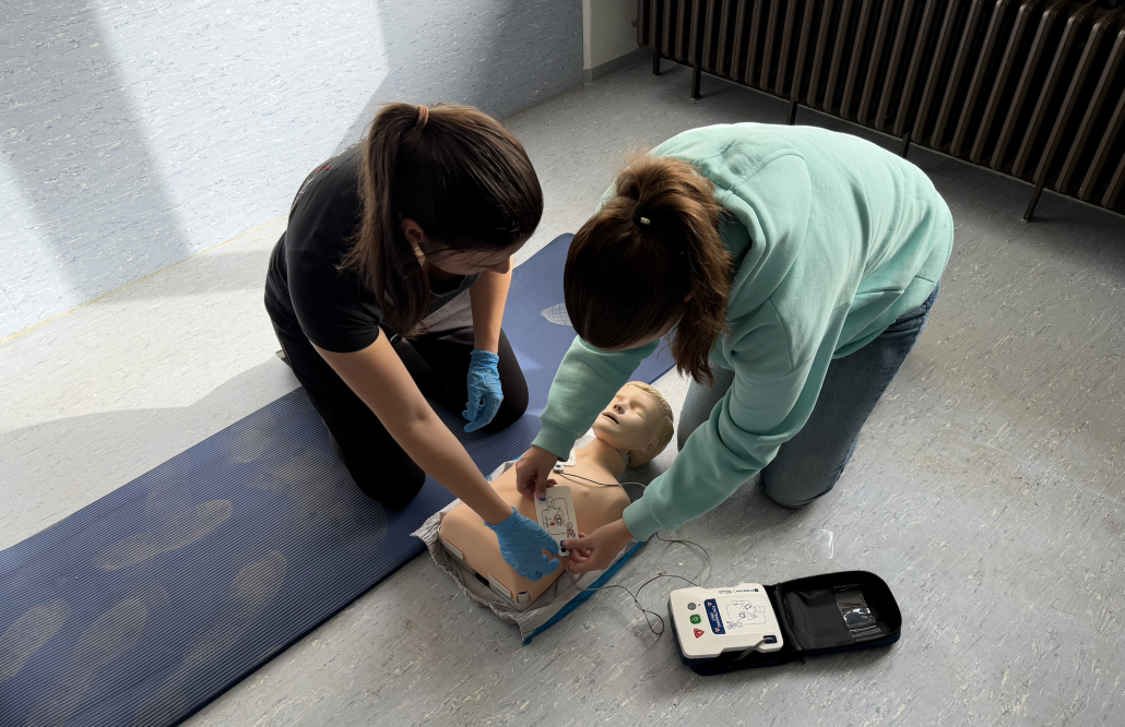 Ein weiteres Highlight war der Defibrillator. Wir haben gelernt, wie man dieses Gerät benutzt und dass es in vielen öffentlichen Gebäuden hängt, damit man im Notfall schnell helfen kann. Viele von uns hatten vorher noch nie gesehen, wie so ein Gerät funktioniert.