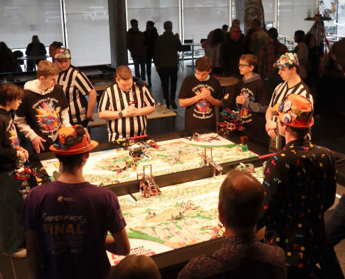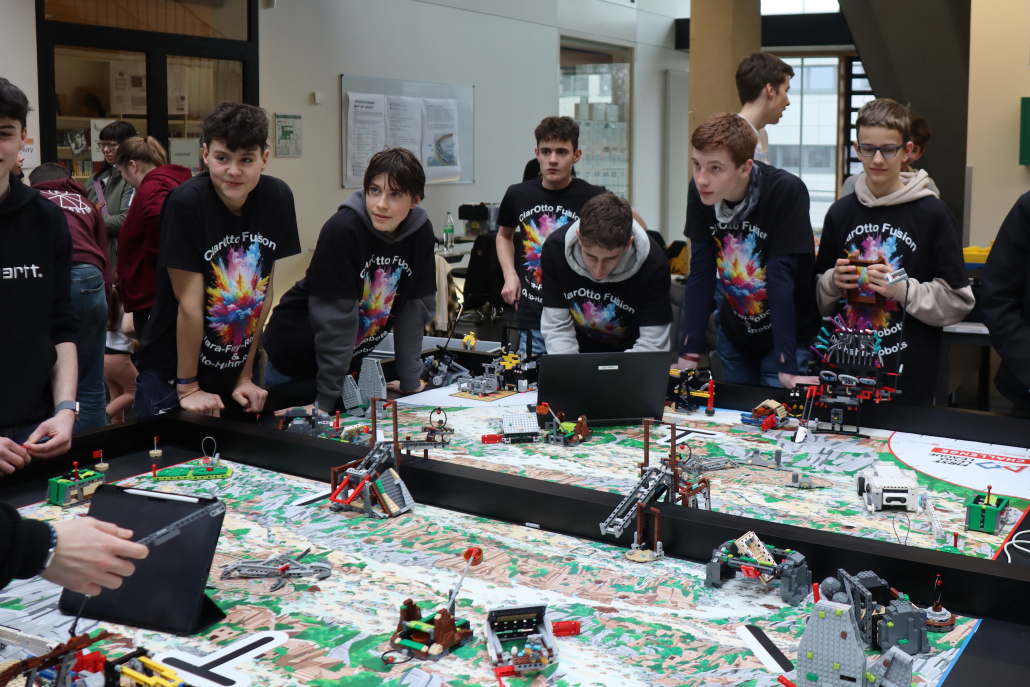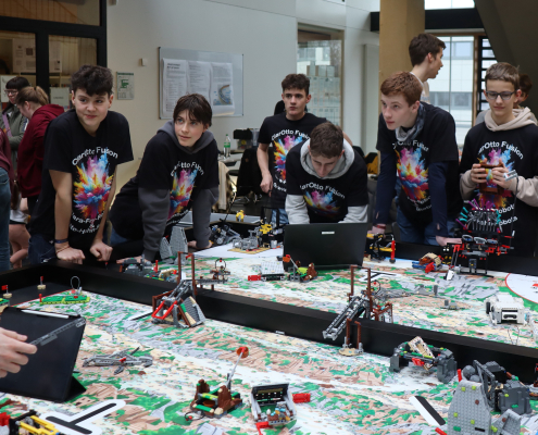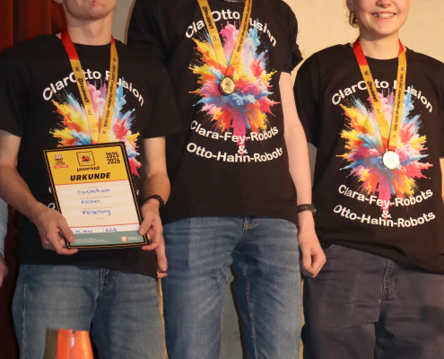 Am 21. Februar fand, wie auch in den letzten Jahren, die First Lego League mit Teilnahme unserer Schule am Inda-Gymnasium in Aachen statt. Dieses Mal gab es aber eine Besonderheit. Das Team, bestehend aus Jan Kilian Theis, Finn Niehsen, Jakob Hermes und dem Coach Niclas Jansen, hat sich dieses Jahr mit einer anderen Schule, dem Otto-Hahn-Gymnasium, unter dem Namen „ClarOtto-Fusion“ zusammengetan.
