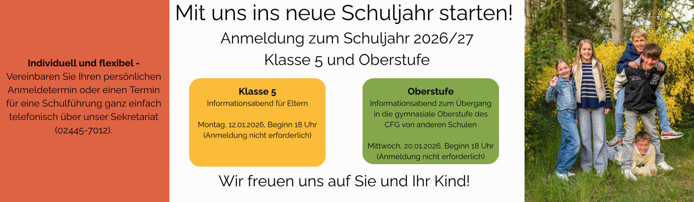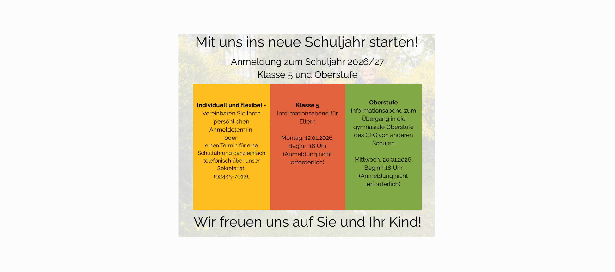 Am Samstag, dem 8. November 2025, begrüßen wir die Eltern und Euch, liebe Viertklässler, sehr herzlich an unserer Schule. Alle haben die Gelegenheit, das Schulgebäude und unser weitläufiges Schulgelände kennenzulernen. Ebenso haben wir ganz viele Einblicke in unser umfangreiches Fächerangebot vorbereitet.